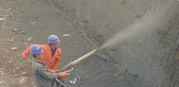 潮噴:是將骨料預加少量水,使之呈潮濕狀,再加水泥拌和,從而降低上料、拌和和噴射時的粉塵。但大量的水仍是在噴頭處加入和噴出的,其噴射工藝流程和使用機械同干噴工藝。目前施工現(xiàn)場較多使用的是潮噴工藝。