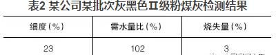 混凝土公司大多數(shù)使用的粉煤灰顏色與水泥相近,多呈灰色;也有部分粉煤灰顏色較深呈灰黑色,這種粉煤灰一般細(xì)度較細(xì)或含碳量較高。但總會(huì)發(fā)現(xiàn)一些深顏色的粉煤灰檢測(cè)結(jié)果與常理不符,如某公司某批次灰黑色Ⅱ級(jí)粉煤灰檢測(cè)結(jié)果見表2。