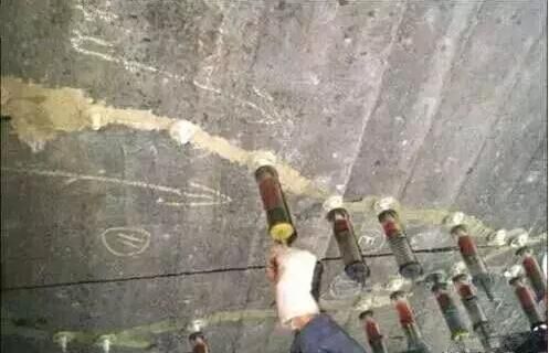 ① 由于混凝土攪拌運(yùn)輸時(shí)間過長,澆筑速度過快,振搗不實(shí)、施工縫做法不當(dāng)、模板走動(dòng)等原因形成裂縫,可以采用一般混凝土裂縫補(bǔ)強(qiáng)措施或者充填混凝土材料、鋼錨栓加固、甚至粘鋼板加固、預(yù)應(yīng)力加固等辦法補(bǔ)救。