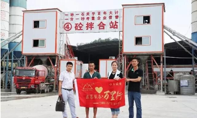 回訪團到達2HZS60水泥混凝土攪拌站工地,查看了設(shè)備運行情況,與攪拌站站長深入交流,攪拌站站長告知設(shè)備運行良好,出料很給力,在整個工程工期中得到保證。