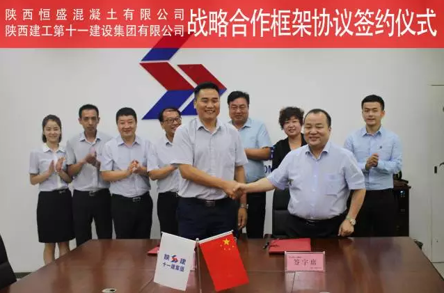 陜西建工第十一建設(shè)集團(tuán)有限公司總經(jīng)理馮宏斌表示:在今后陜西建工第十一建設(shè)集團(tuán)有限公司各類建設(shè)項目,同等條件下優(yōu)先選擇陜西恒盛混凝土有限公司,優(yōu)先與恒盛集團(tuán)合作!雙方將互通信息,實現(xiàn)資源共享最大化,將戰(zhàn)略合作順利推進(jìn)!