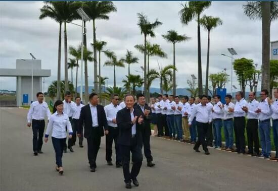 2015年、2016年,繼2012年奠基儀式后,王民董事長再次來到徐工巴西公司。一進(jìn)工廠董事長就飽含深情地走遍廠區(qū)的每一個角落,曾經(jīng)還在腦海中的海外基地建設(shè)藍(lán)圖,與如今現(xiàn)代化的廠房、花園式的廠區(qū)形成鮮明對比,王民董事長對此感慨萬分,說到“徐工巴西一定要成為中國制造走出去的國際化樣板和標(biāo)桿!”十七年耕耘跋涉路,這支能征善戰(zhàn)的“徐工鐵軍”勁旅從零做起,在巴西和南美大地樹立起了徐工集團(tuán)的國際品牌,演繹了徐工集團(tuán)的傳奇和精彩,為中巴全面戰(zhàn)略合作的壯美畫卷上寫下了屬于徐工集團(tuán)濃墨重彩的一筆。王民董事長指出:徐工巴西要堅定戰(zhàn)略目標(biāo),為祖國貢獻(xiàn)一個世界級的品牌!