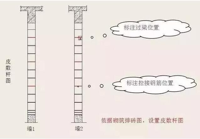 ( 2 )施工時(shí)在墻體轉(zhuǎn)角處立好皮數(shù)桿或利用混凝土墻柱做皮數(shù)桿,桿上標(biāo)明塊層、灰縫、窗臺(tái)板、門窗洞口、過梁、圈梁、預(yù)制件等的高度及位置,并應(yīng)隨時(shí)檢查其準(zhǔn)確性。