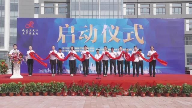 臺上領(lǐng)導共同為慶典儀式剪彩,將現(xiàn)場氣氛推向高潮。
