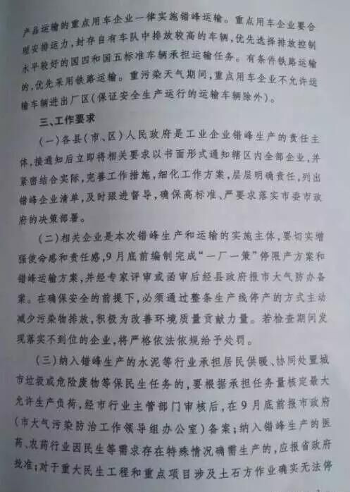 山東省日前也出臺了“落實《方案》實施細(xì)則”(下稱“細(xì)則”),其中,“錯峰生產(chǎn)”成為關(guān)鍵詞之一?!凹?xì)則”要求,2017年10月1日至2018年3月31日,(山東省內(nèi))7個傳輸通道城市轄區(qū)內(nèi)焦化企業(yè)出焦時間均延長至36小時以上,位于城市建成區(qū)的焦化企業(yè)要延長至48小時以上。除滿足達(dá)標(biāo)排放要求的電爐、天然氣爐外,濟(jì)南、淄博、濟(jì)寧、泰安、萊蕪、德州、聊城、濱州、菏澤9市其他鑄造企業(yè)采暖季全部實施停產(chǎn)。