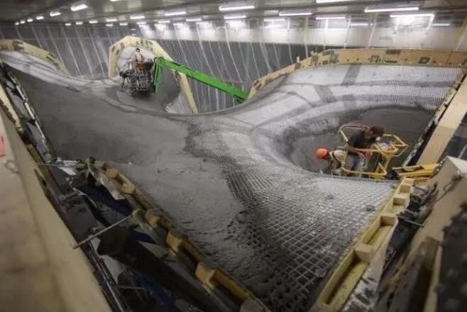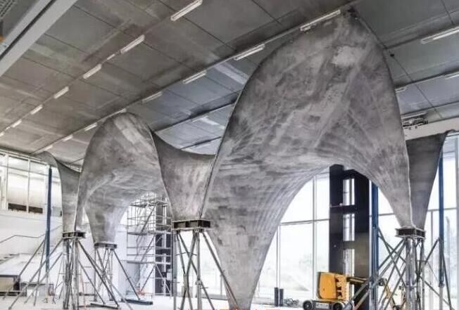 據(jù)了解,工程師們在打造過程中并沒有采用定制、一次性的木頭或泡沫支架,而是使用了他們自己設(shè)計(jì)的一種新技術(shù)。一張鋼索網(wǎng)被拉伸到想要的形狀,然后再在上面放置聚合織物形成一個(gè)靈活的模板。之后形狀可以通過算法控制,它能將力均勻地發(fā)布在各鋼索間并決定每個(gè)部分所需要的混凝土量。之后,鋼索網(wǎng)可以被拆掉、重復(fù)使用和重新調(diào)整。