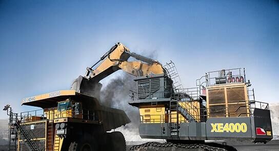 徐工國內(nèi)首臺(tái)400噸級(jí)液壓挖掘機(jī)和徐工巨型礦用自卸車在山西平朔煤礦施工