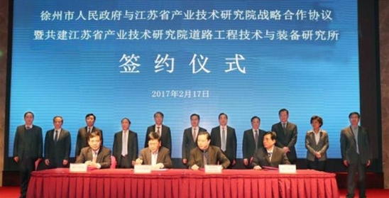 2月17日徐州市人民政府與江蘇省產(chǎn)業(yè)技術研究院戰(zhàn)略合作協(xié)議暨共建江蘇省產(chǎn)業(yè)技術研究院道路工程技術與裝備研究所簽約儀式