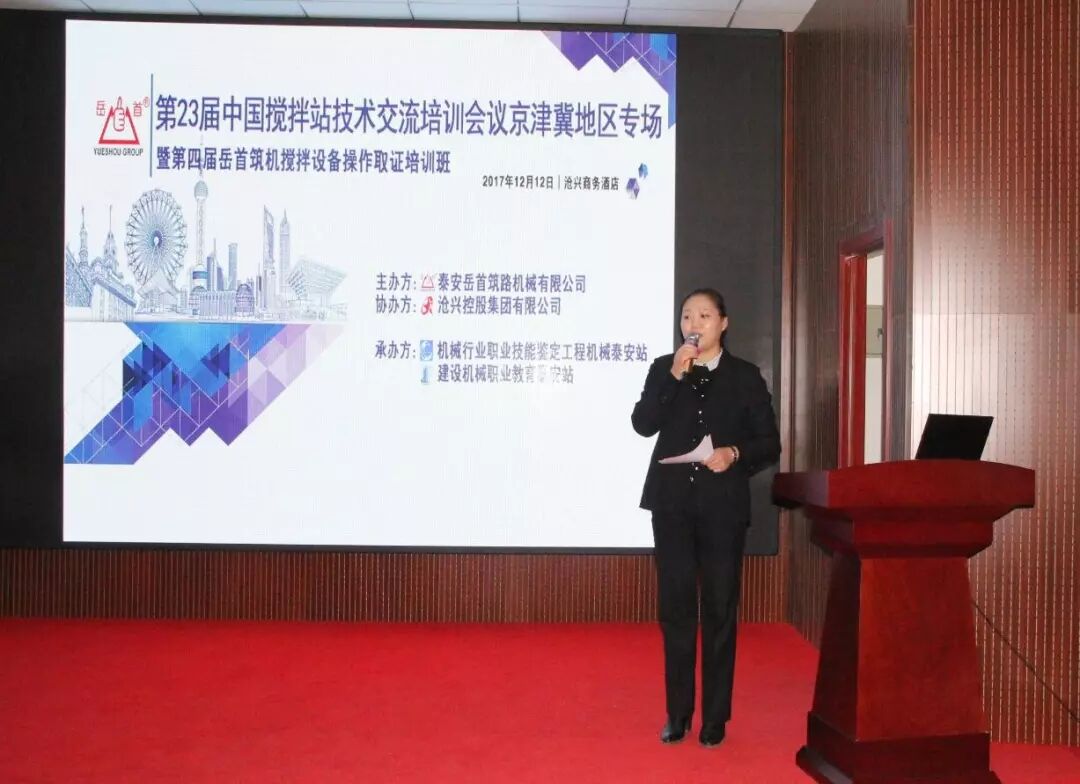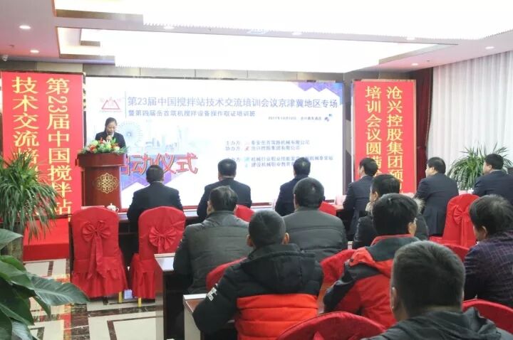 為進(jìn)一步提高攪拌設(shè)備從業(yè)人員的專(zhuān)業(yè)管理、操作技能水平;探討交流攪 拌站維護(hù)保養(yǎng)方式方法;使一線管理、操作人員具備能管理、懂原理、懂構(gòu)造、懂用途、懂性能,會(huì)操作、會(huì)維護(hù)、會(huì)排除故障的專(zhuān)業(yè)技能;更好 地服務(wù)于設(shè)備使用單位。泰安岳首筑路機(jī)械有限公司聯(lián)合機(jī)械行業(yè)職業(yè)技 能鑒定工程機(jī)械泰安站、建設(shè)機(jī)械職業(yè)教育泰安站于2017 年12 月11-12 日在河北省滄州市舉辦了“第23屆中國(guó)攪拌站技術(shù)(設(shè)備)交流培訓(xùn)會(huì)議 京津冀地區(qū)專(zhuān)場(chǎng)暨第四屆岳首筑機(jī)攪拌設(shè)備管理操作培訓(xùn)班”,滄興控股集團(tuán)有限公司協(xié)辦了本次會(huì)議。