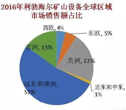 利勃海爾礦山設(shè)備產(chǎn)品線,澳洲和遠東市場銷售額占比高達53%,西歐只有4%。