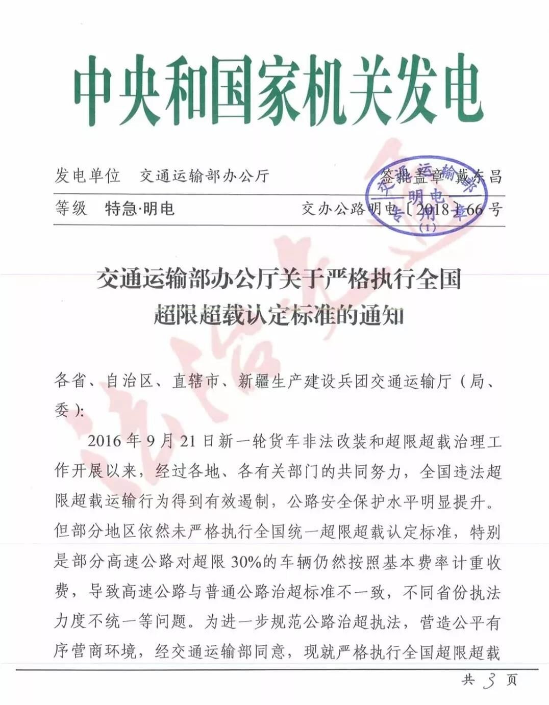 文件強調(diào):部分地區(qū)依然未嚴格執(zhí)行全國統(tǒng)一超限超載認定標準,部分高速公路對超限30%的車輛仍然按照基本費率計重收費,導致高速公路與普通公路治超標準不一致,不同省份執(zhí)法力度不統(tǒng)一等問題。未按標準執(zhí)行的地區(qū),9月底前全面整改。