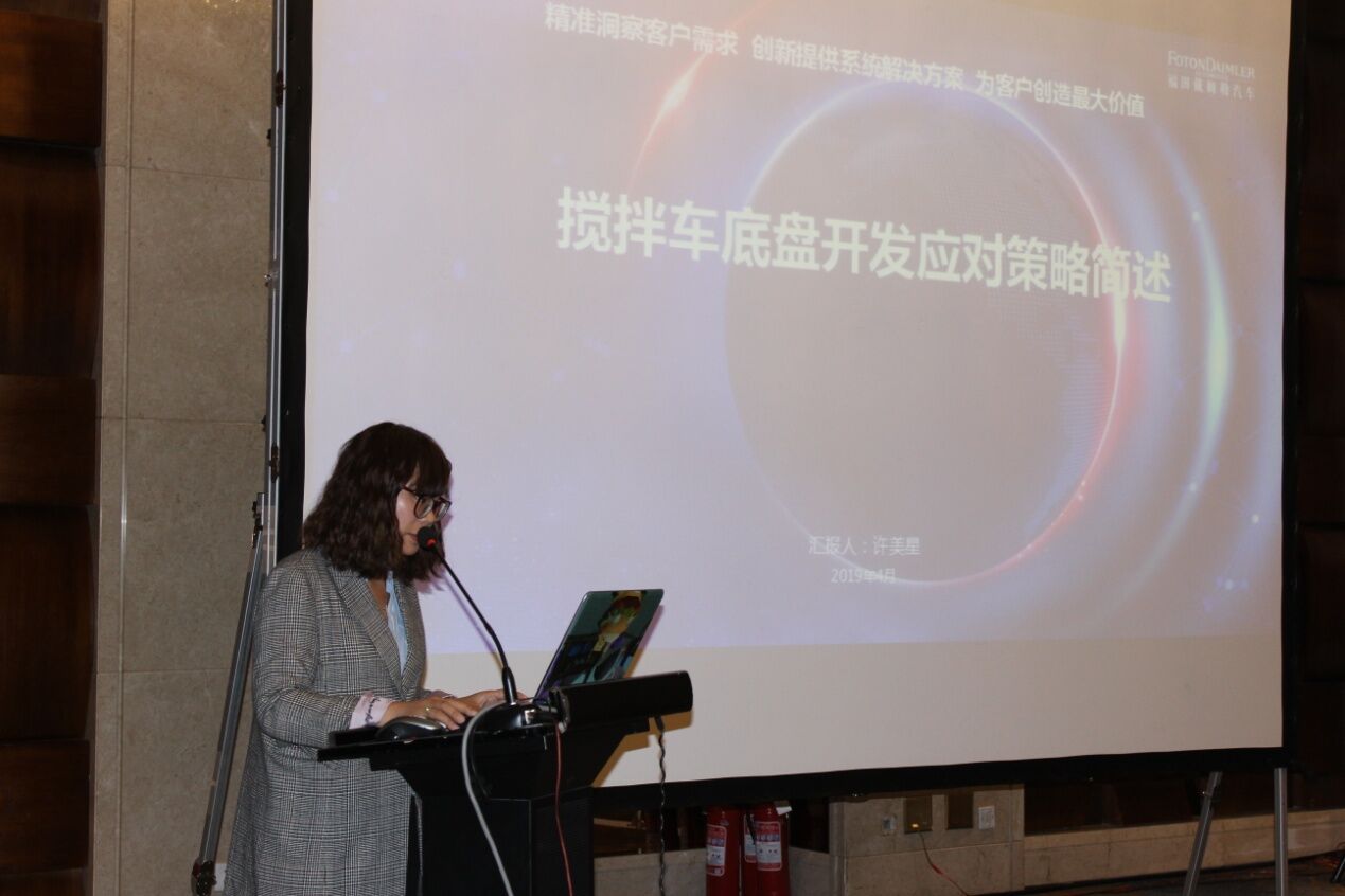 北汽福田汽車股份有限公司技術(shù)部部長(zhǎng)許美星女士作了《適應(yīng)攪拌車新法規(guī)之底盤設(shè)計(jì)》的主題報(bào)告,結(jié)合攪拌車的發(fā)展趨勢(shì)介紹了重卡發(fā)展的總體趨勢(shì)以及政策法規(guī)制定進(jìn)程,有很多參考的價(jià)值和意義。同時(shí)許部長(zhǎng)還介紹了認(rèn)證體系中的主要應(yīng)對(duì)項(xiàng)以及BFDA產(chǎn)品開發(fā)應(yīng)對(duì)策略,讓與會(huì)者對(duì)于配套的底盤及政策有了更多了解。