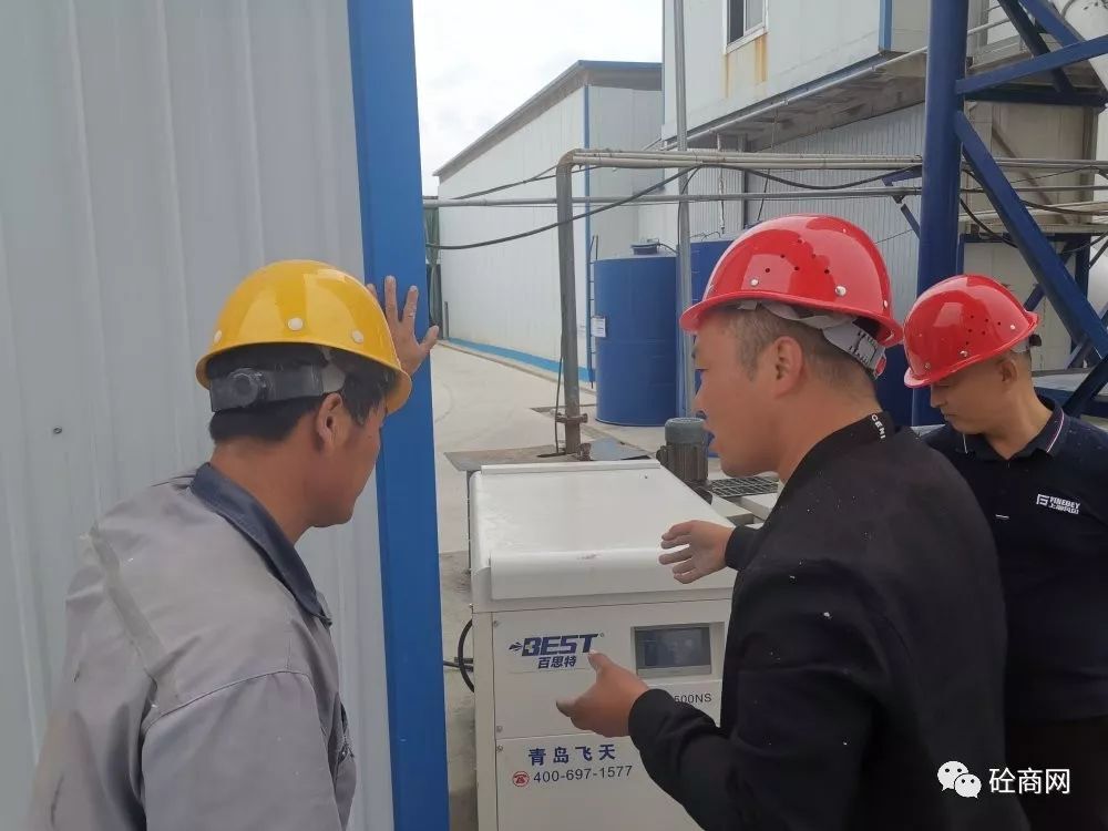 到了青島某攪拌站后,其攪拌站負(fù)責(zé)人攜站長親自到現(xiàn)場觀看試機(jī)效果。
