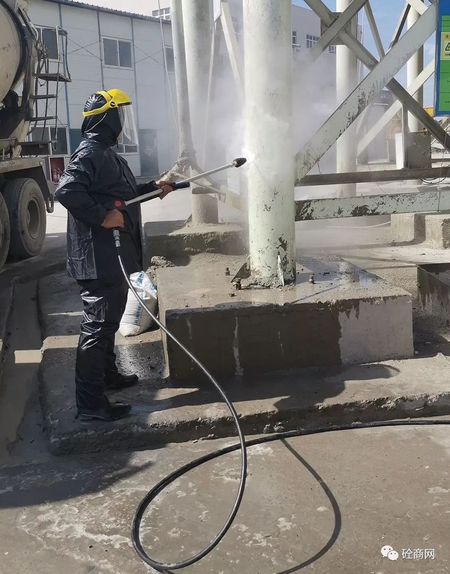 在楊技術(shù)員給站上工作人員進(jìn)行初步講解指導(dǎo)后,首先對(duì)兩年沒有清理過的水泥倉支腿下方累積的混凝土進(jìn)行了處理。那么,效果究竟怎么樣呢?具體視頻關(guān)注“砼商網(wǎng)”公眾號(hào),回復(fù)“高壓清洗機(jī)”即可獲得技術(shù)員正準(zhǔn)備打攪拌機(jī)主樓容易噴濺混凝土的地方時(shí)該攪拌站站長說道,這可得有兩年沒清理過的混凝土結(jié)塊,十幾公分厚呀!你們這高壓清洗機(jī)能打掉嗎?這是混凝土?。∵@么長時(shí)間了,還這么厚,打不下去怎么辦?正在小編心里打鼓的時(shí)候,楊技術(shù)員說道,沒問題,放心吧!