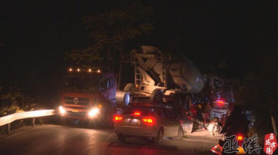 11月11日中午12時左右,在S102省道二灣附近,一輛大型混凝土攪拌罐車側(cè)翻,幸無人員傷亡。