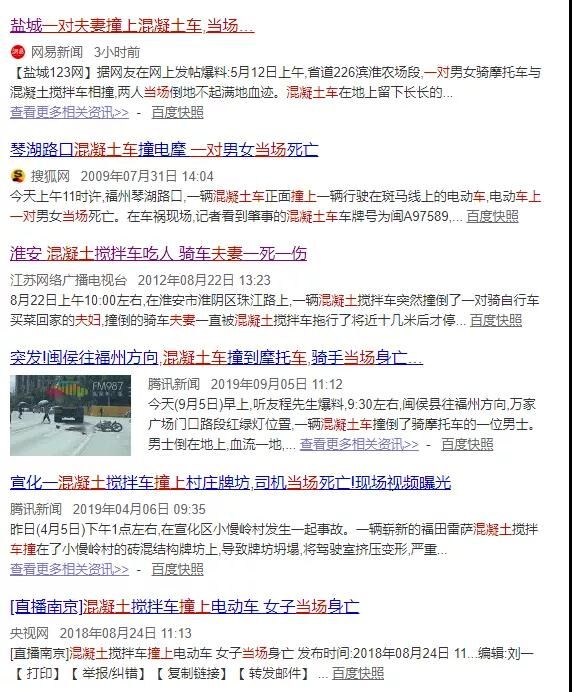 每年混凝土攪拌車(chē)發(fā)生碰撞的事并非少數(shù),小編在百度上一搜索,心中一痛。發(fā)生這種事,對(duì)混凝土攪拌站、司機(jī)、受害人都是有影響的。輕則罰款、名義受損,重則當(dāng)場(chǎng)丟失性命。