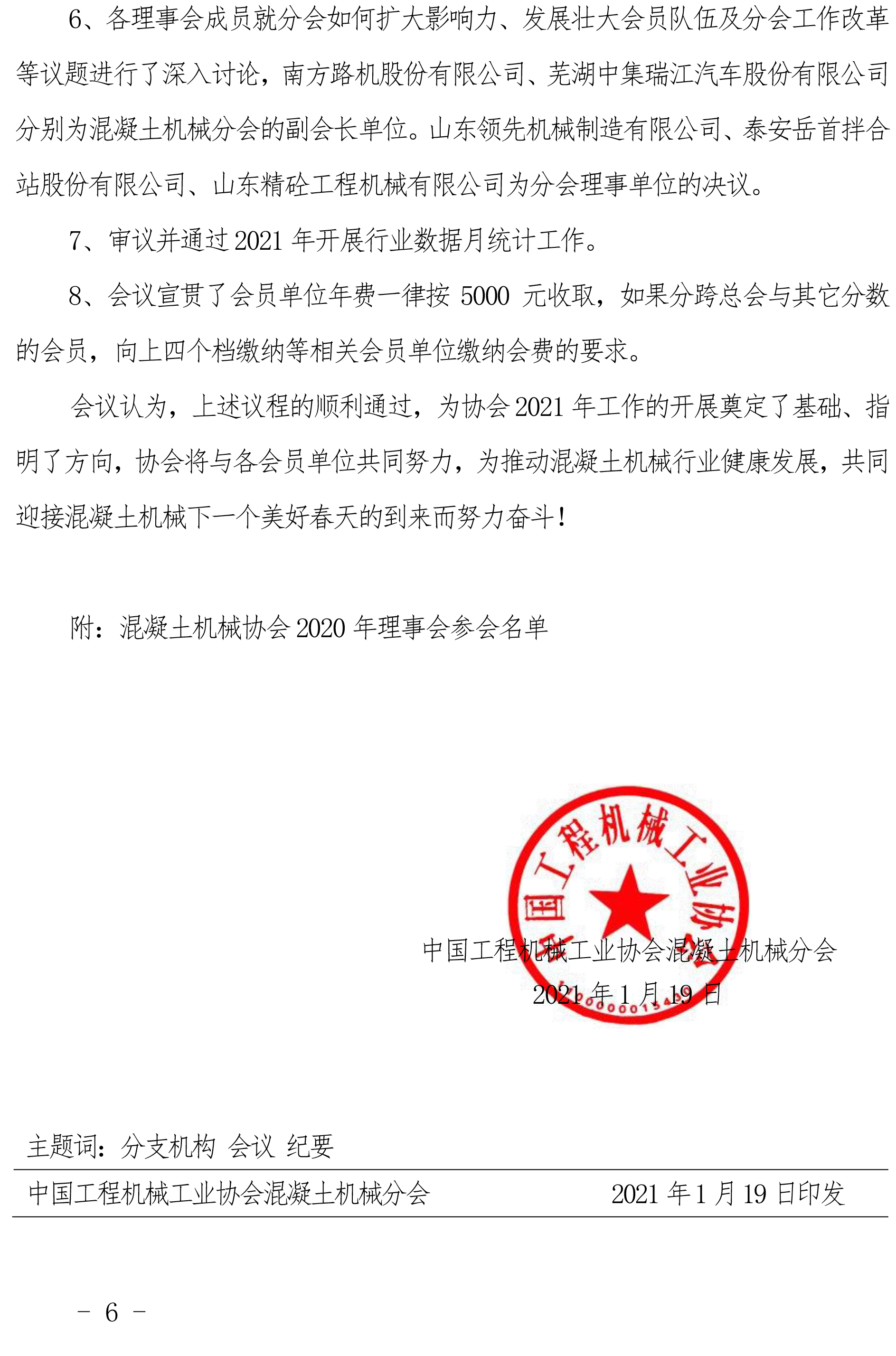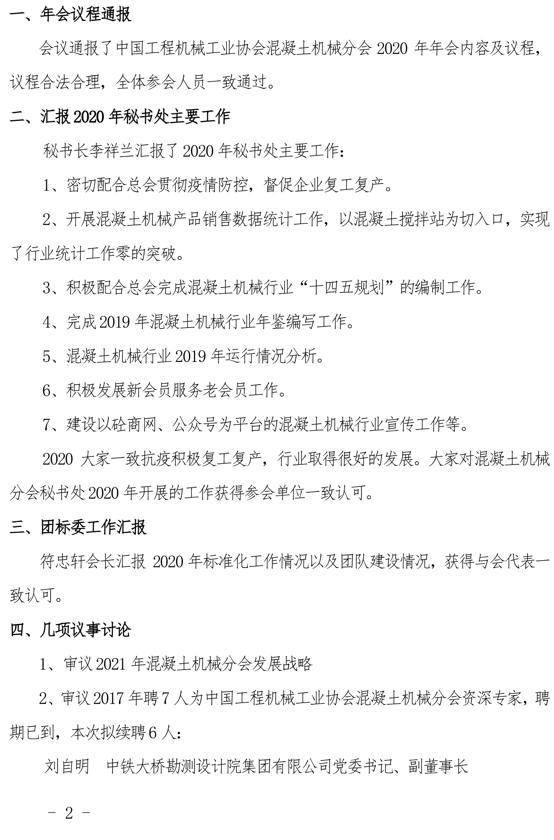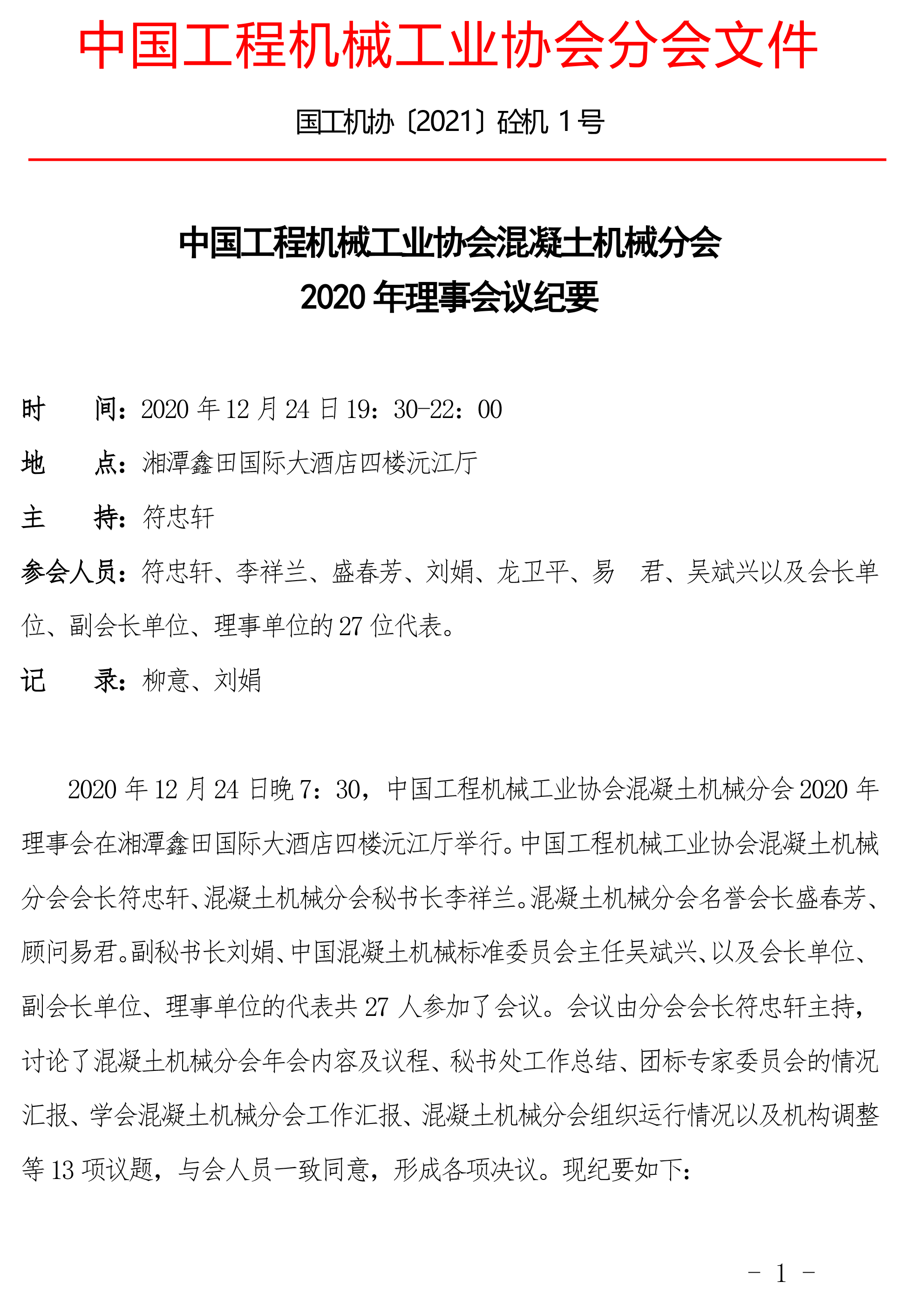 中國(guó)工程機(jī)械工業(yè)協(xié)會(huì)混凝土機(jī)械分會(huì) 2020 年理事會(huì)議紀(jì)要