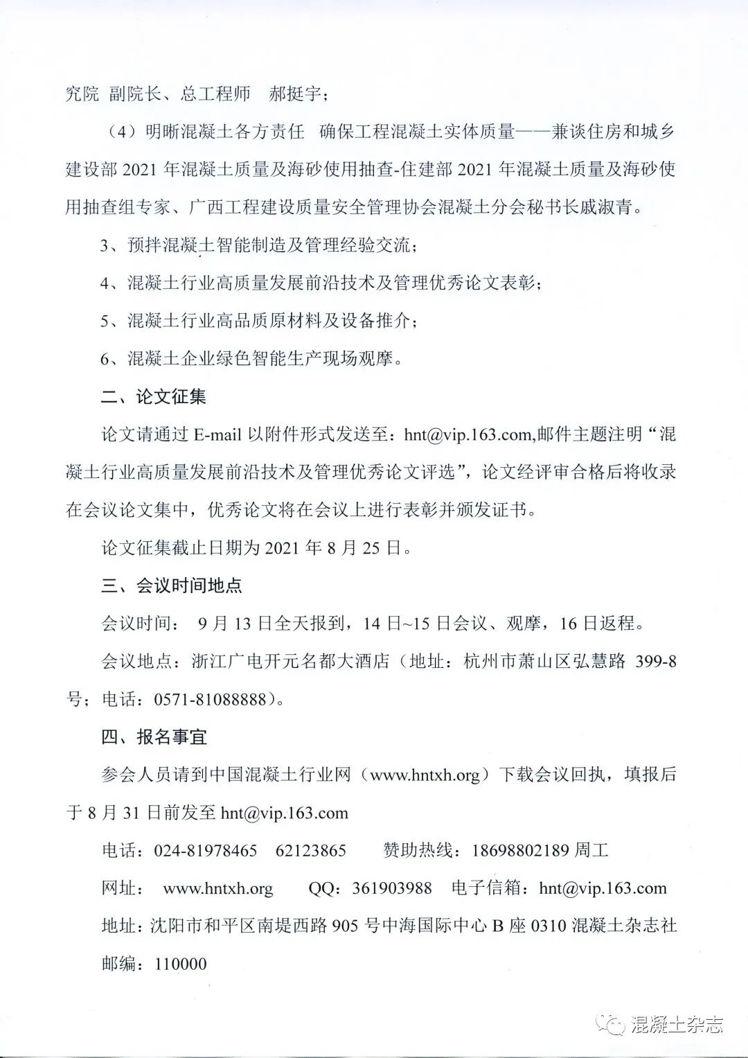 論文請通過E-mail以附件形式發(fā)送至:hnt@vip.163.com,郵件主題注明“混凝土行業(yè)高質(zhì)量發(fā)展前沿技術(shù)及管理優(yōu)秀論文評選”,論文經(jīng)評審合格后將收錄在會議論文集中,優(yōu)秀論文將在會議上進(jìn)行表彰并頒發(fā)證書。