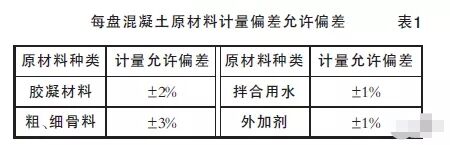 《混凝土質(zhì)量控制標(biāo)準(zhǔn)》(GB50164-2011)第6.3.2條每盤混凝土原材料計量的允許偏差應(yīng)符合表1的規(guī)定,原材料計量偏差應(yīng)每班檢查1次。