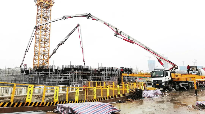 此次底板澆筑的混凝強(qiáng)度等級達(dá)C50P10,屬于高強(qiáng)度混凝土,其配合比更是屬于施工方“量身定制”,混凝土性能提升的同時也給泵車施工帶來了巨大的壓力。