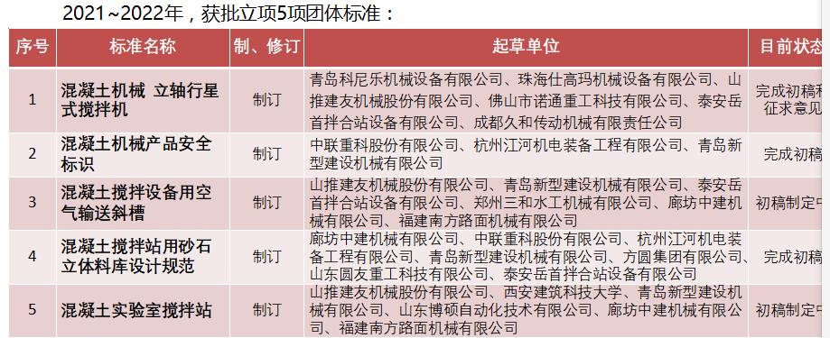 2022年積極組織申報1-2項(xiàng)團(tuán)體標(biāo)準(zhǔn)至工信部百項(xiàng)團(tuán)體標(biāo)準(zhǔn)應(yīng)用示范項(xiàng)目,促進(jìn)團(tuán)體標(biāo)準(zhǔn)優(yōu)質(zhì)發(fā)展,持續(xù)擴(kuò)大凝十機(jī)械的社會影響力。