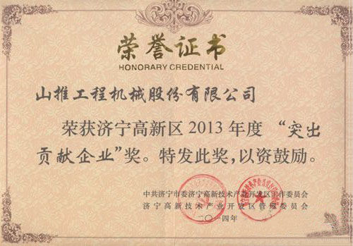 山推全年在區(qū)內(nèi)的科技創(chuàng)新與技術(shù)發(fā)展方面起到了輻射帶動作用,財政貢獻(xiàn)顯著,為全區(qū)經(jīng)濟(jì)社會又好又快發(fā)展做出了突出貢獻(xiàn)。根據(jù)《濟(jì)寧高新區(qū)管委會關(guān)于鼓勵企業(yè)創(chuàng)新發(fā)展的若干規(guī)定》(濟(jì)高新管發(fā)【2012】32號)文件精神,公司被授予“突出貢獻(xiàn)企業(yè)”與“專利特別獎”,同時獲得一項科技進(jìn)步獎與行業(yè)標(biāo)準(zhǔn)獎勵,研究總院副院長周士建博士榮獲“551人才”稱號。