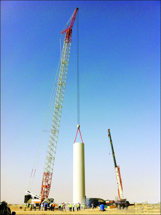 該風(fēng)電項目地點位于巴基斯坦卡拉奇信德省的東北部,距卡拉奇市約150公里,風(fēng)電項目總裝機規(guī)模30MW,項目將裝設(shè)12臺2.5MW風(fēng)機,每臺風(fēng)電機配套提供一臺箱式變電站,此大型工程普通起重機根本無法勝任,而作為中聯(lián)重科履帶吊的明星產(chǎn)品,QUY500以組裝便捷性、起重性能、吊裝效率等方面的優(yōu)勢征服了巴基斯坦客戶以及施工單位團隊。此次QUY500進行的風(fēng)電場首吊采用的是固定副臂風(fēng)電工況(主臂84米+固定副臂12米)、起吊幅度20m、額定起重量為110t、起吊高度100m、機艙重量84t、負(fù)載率為83.6%。在巴基斯坦卡拉奇的成功首吊,再一次驗證了中聯(lián)QUY500“風(fēng)電之王”的美譽。