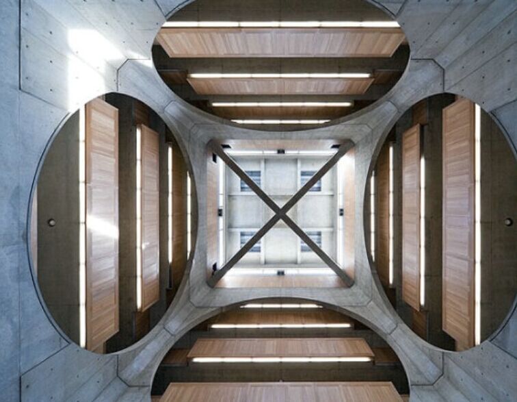 坎姆貝爾的拱頂覆蓋的是鉛板,康認(rèn)為鉛板具有和混凝土、鈣華石相通的材料特征。隨著時(shí)間的延伸鉛板會(huì)逐漸變成自然的質(zhì)感,在陽(yáng)光的作用下有雪的反光效果。這些材料和諧的組織在一起,反映出康對(duì)材料自然本質(zhì)的熱衷和追求。
