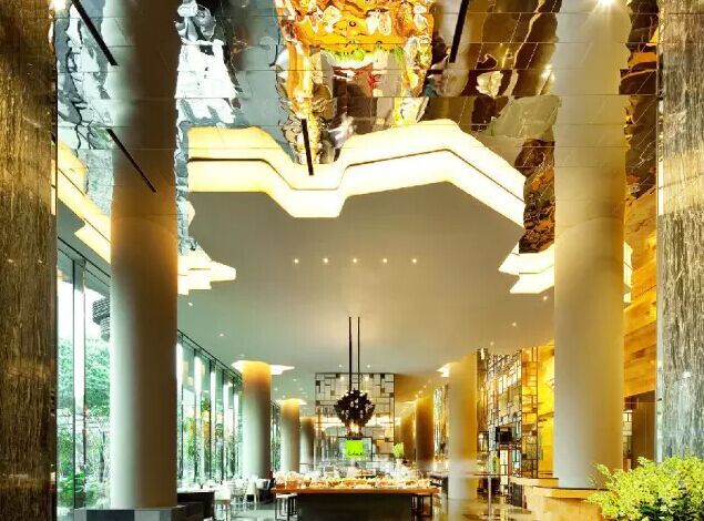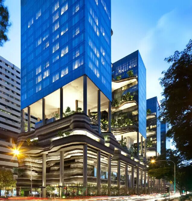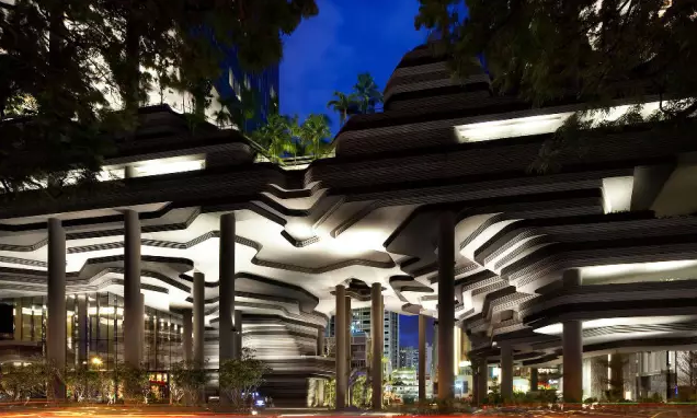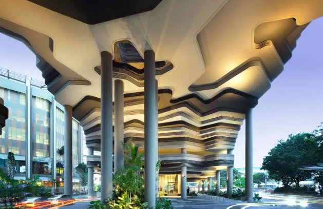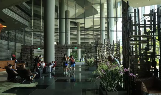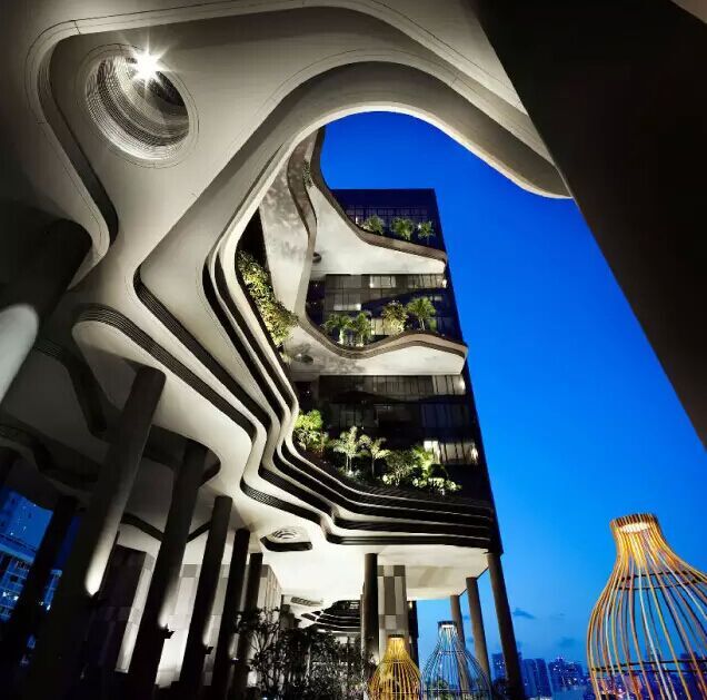 建筑流動(dòng)的幾何體給人一種高聳入云之感,塔樓每隔三層客房擁有懸挑的空中花園,上面種滿了熱帶植物,它已成為城市綠地的一部分,與鄰近公園融為一體。酒店擁有自我遮陽(yáng)功能,懸挑而出的空中花園和相鄰的三座酒店客房大樓都能起到遮陽(yáng)的作用,客房樓層立面采用低輻射玻璃。酒店頂樓的屋頂花園可將全城風(fēng)光一覽無余,獨(dú)家蘭花貴賓會(huì)所位處該層,并配有私人會(huì)議空間、圖書館和專用的貴賓會(huì)所門房。酒店五層設(shè)有可俯瞰城市的無邊界泳池,設(shè)備先進(jìn)的健身中心,特色的鳥籠休息涼亭及長(zhǎng)達(dá)300米花園走道。