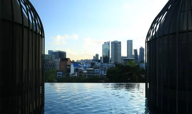 酒店位于其中心商業(yè)區(qū),是新加坡WOHA建筑事務(wù)所的杰作,負(fù)責(zé)景觀設(shè)計(jì)的為Tierra事務(wù)所。皮克林賓樂雅采用花園酒店理念,貫徹節(jié)能,已獲新加坡綠色建築最高榮譽(yù)BCA綠色建築白金獎(jiǎng),因其為首間使用太陽(yáng)能酒店,獲得太陽(yáng)能先鋒獎(jiǎng)。酒店樓高16層,12層高的塔樓坐落在5層高裙樓樓頂上,塔樓每隔三層懸挑一座空中花園。裙樓被波狀預(yù)制混凝土包圍,WOHA稱之為地形建筑、會(huì)呼吸的建筑。