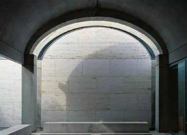 另一位美國建筑師路易 康對混凝土的要求是:貫穿整體的秩序感和通過完整墻面表現(xiàn)出來的美感。金貝爾美術(shù)館位于美國德克薩斯州沃思堡的郊區(qū),于1972年建成。康在此展現(xiàn)了其個人對于建筑材料的偏好:將混凝土柱和薄殼形拱頂結(jié)構(gòu)裸露在外,而非承重墻則采用羅馬灰華石及玻璃板,以展示出強烈對比。