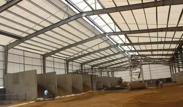 1.孫總,你好!請問這個料倉看著很漂亮而且這個材質(zhì)比較特殊您給大家介紹一下吧。孫總:我們這個料倉應該是青島市最大,環(huán)保型的料倉;它采用的的全封閉式的結(jié)構(gòu),大大的降低的粉塵物的污染。而且我們這個料倉采用的沙灘帳篷的材質(zhì),是一種比較高級的尼龍纖維,它的壽命比彩鋼板高出2倍左右,而且它的采光非常好,你可以看到料倉里面的光線是非常充足的,我們是四面封閉,也滿足了環(huán)保的需求。