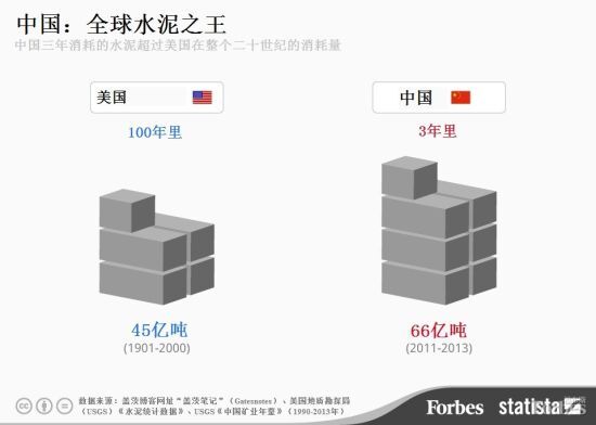 比爾·蓋茨做了一個令人震撼的對比,讓大家對中國在二十一世紀對水泥的狼吞虎咽有一個直觀認識。比爾·蓋茨在個人博客上表示,2011年至2013年期間,中國消耗了66億噸水泥,超過美國在整個二十世紀的消耗量。但是看看美國在1901年至2000年期間建造了哪些工程:各種摩天大樓、州際公路、胡佛水壩等等,而期間消耗的水泥總共只有45億噸。不過,蓋茨沒有能夠呈現(xiàn)中美兩國地理環(huán)境、建筑習慣的差異,因而有些大驚小怪。