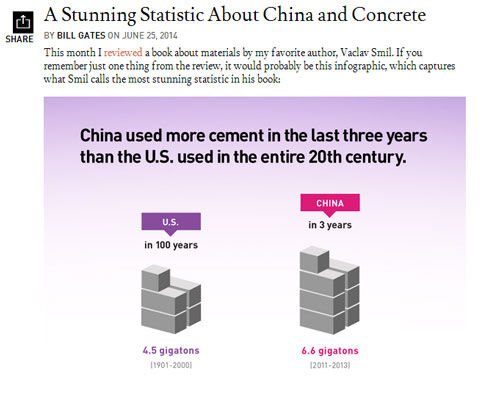 比爾·蓋茨在個人博客上比較中美水泥消耗