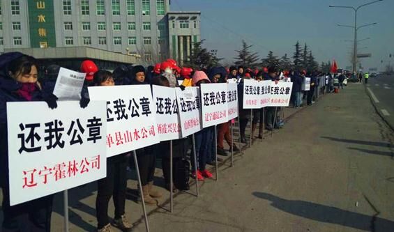 對(duì)于此次九省職工齊聚濟(jì)南總部討要公章一事,山東山水新總部一名負(fù)責(zé)人告訴記者,“這也是無(wú)奈之舉,企業(yè)要生產(chǎn),員工要生存,我們真的拖不起了?!?/span>