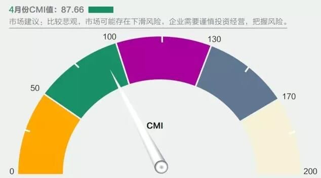 2016年4月份中國工程機械市場指數(shù)即CMI為87.66,同比增速-7.27%,環(huán)比增速-35.67%(依據(jù)CMI判斷標(biāo)準(zhǔn),CMI在50~100之間,表示市場比較悲觀,可能存在下滑風(fēng)險)。