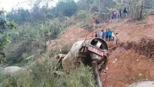 白石人劉某駕駛掛著桂K Y1093號牌的混凝土攪拌車,拉一車混凝土前往白雞村卸完混凝土后其駕車沿省道S370從白雞方向返回, 當車輛行經(jīng)白雞村干河一下坡急轉彎路段時懷疑閃避2名學生,車輛失控翻下數(shù)十米深的溪澗中,當?shù)匦l(wèi)生院、公安民警、消防接報先后趕到現(xiàn)場處置開展救援。