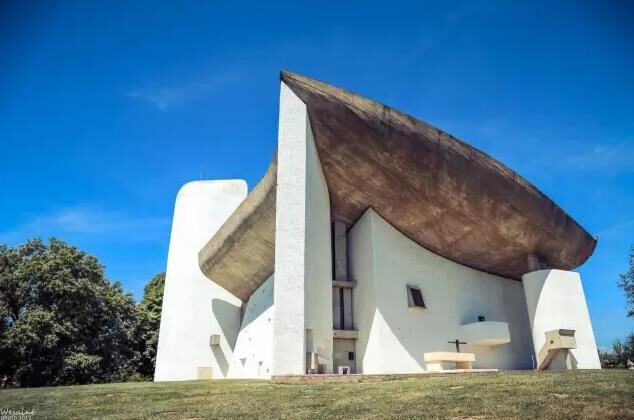 朗香是柯布經(jīng)典中的經(jīng)典,具有劃時(shí)代的意義?;炷磷鳛榈袼艿恼Z(yǔ)言,展示了粗野材料與詩(shī)意表達(dá)的可能。