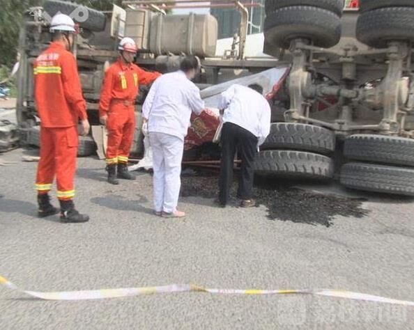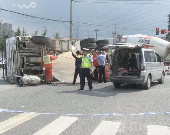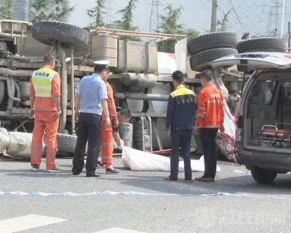 事故發(fā)生之后,南京交警十大隊(duì)民警迅速趕到現(xiàn)場(chǎng),設(shè)置路障、保護(hù)現(xiàn)場(chǎng),呼叫救護(hù)車過來救助傷者。荔枝新聞通訊員在現(xiàn)場(chǎng)看到,一輛大型水泥攪拌車側(cè)翻在紅綠燈路口中間,車頭頂著一輛踏板電瓶車,騎車的男子被攪拌車壓在底下,已經(jīng)死亡。肇事的水泥攪拌車駕駛員也投案自首。