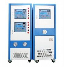 泵浦驅(qū)動傳熱介質(zhì)(通常為水或油)從內(nèi)置加熱器中到達需要控溫的設備,再從控溫設備回到加熱器中.控制器根據(jù)溫度傳感器測量的熱流體溫度或控溫設備內(nèi)部溫度,調(diào)節(jié)熱流體的溫度從而調(diào)節(jié)控溫設備的溫度.