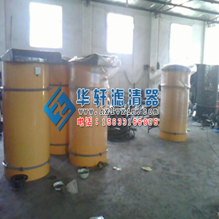 水泥倉頂除塵器是一種圓形可拆的金屬濾筒,底板上有14個(gè)嵌入圓形孔,它設(shè)有14個(gè)濾芯,扎緊在上端1個(gè)振動(dòng)器的吊架上,定時(shí)震動(dòng),使濾芯阻留下來的灰塵降落在倉內(nèi)。
