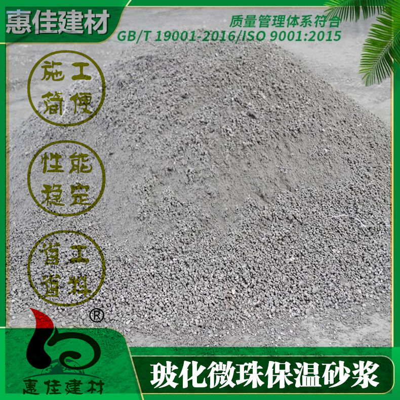 ?;⒅楸厣皾{是應(yīng)用于外墻內(nèi)外保溫的一種新型無(wú)機(jī)保溫砂漿材料, 以?;⒅闉檩p質(zhì)骨料、玻化微珠保溫膠粉料按一定比例攪拌均勻混合而成,具有強(qiáng)度高、質(zhì)輕、保溫、隔熱好、電絕緣性能好、耐磨、耐腐蝕、防輻射等顯著特點(diǎn)。