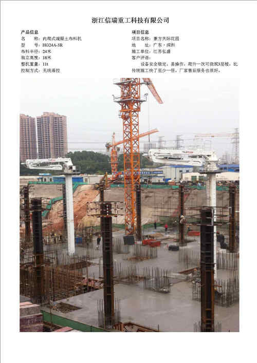歸屬行業(yè):信瑞重HG24A-3R電梯井內(nèi)爬混凝土布料機(jī)