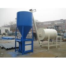 過傳感器的數(shù)據(jù)反饋,實現(xiàn)原料計量。計量好后的物料,通過螺旋輸送機(jī)導(dǎo)進(jìn)主斗提機(jī),提升到混合機(jī)上部待混料倉中。待混倉為氣動大開門型,可以迅速將待混物料放入無重力