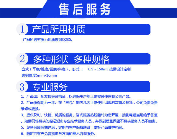 我們公司并可根據(jù)客戶要求制作來(lái)圖來(lái)料加工防腐儲(chǔ)罐。工程質(zhì)量達(dá)到經(jīng)濟(jì)、合理、可靠、可信和優(yōu)良的標(biāo)準(zhǔn)。讓您滿意是我們的追求。為您服務(wù)是我們的職責(zé)?!百|(zhì)量是企業(yè)生存的命脈 ;信譽(yù)是廠家發(fā)展的階梯?!?讓利客戶、規(guī)格生產(chǎn)、成本降低、統(tǒng)一銷售。歡迎廣大客戶來(lái)函、來(lái)電、來(lái)樣咨詢訂購(gòu),讓您買(mǎi)的放心用得安心,與您攜手共創(chuàng)輝煌。