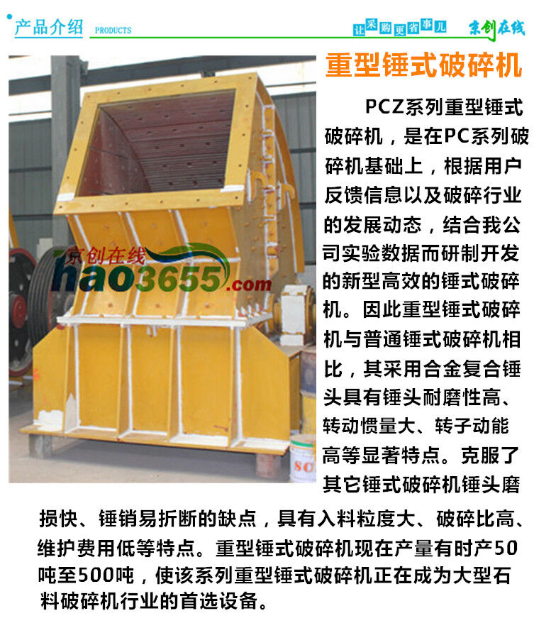 PCZ系列重型錘式破碎機(jī)PCZ-1308具有運(yùn)行成本低,配套功率小,生產(chǎn)成本低,喂料粒度大,破碎比大,產(chǎn)品粒度小等優(yōu)點(diǎn),是礦山界廣泛使用的破碎設(shè)備。