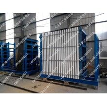 立式內墻輕質墻板生產線是我公司參照國內外等先進技術和經驗,經反復試驗研制成功的新產品。是外墻外保溫板實現(xiàn)工廠化生產的重大發(fā)明,已申請多項國家專利。本生產線有全自動攪拌系統(tǒng)、自動制板機、自動切割鋸、群鉆三部分組成。