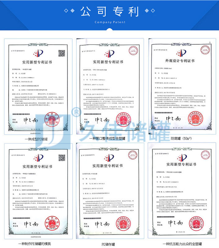 2、東莞久佳出品的塑料儲(chǔ)罐的材質(zhì)為滾塑專用料——線性低密度聚乙烯(LLDPE)或線性中密度聚乙烯(LMDPE)。它可以盛裝常溫下的無(wú)機(jī)酸、堿、鹽大部份物質(zhì)及許多有機(jī)物;
