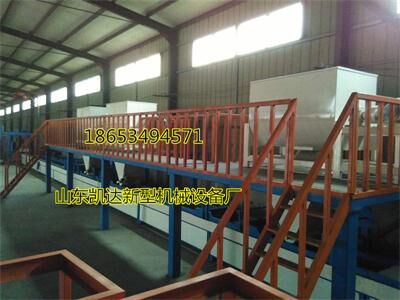 6、FS保溫復(fù)合一體板設(shè)備:由開槽機(jī)、履帶輸送機(jī)、網(wǎng)格布布料器、壓實器、整形器、送板機(jī)、模架等組成。