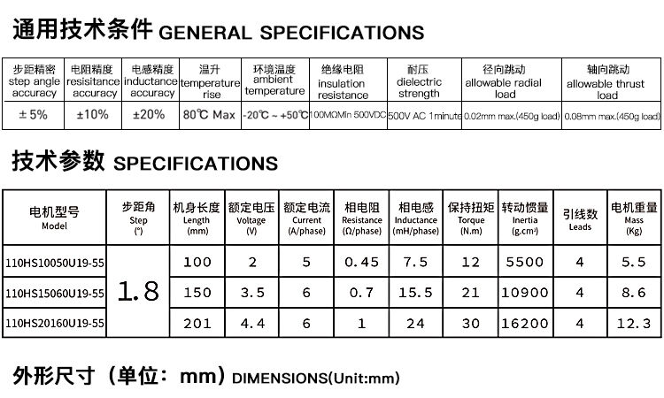 兩相1.8°混合式步進(jìn)電機(jī)110系列步進(jìn)電機(jī)